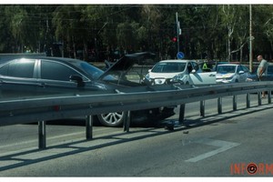 В Днепре на Запорожском шоссе Toyota столкнулась с Nissan и влетела в отбойник: заняты две полосы