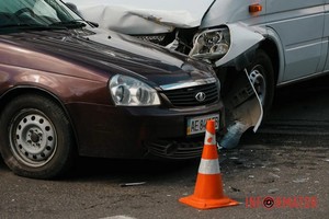 В Днепре на Коцюбинского возле ТРЦ «Мост-Сити» Lada столкнулась с маршруткой №21: есть пострадавшие