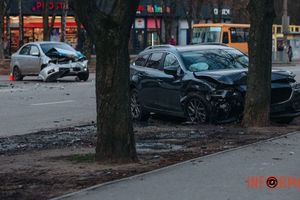 Одна з автівок декілька разів перекинулася на дах: у Дніпрі на Набережній Заводській зіткнулись SsangYong та Subaru