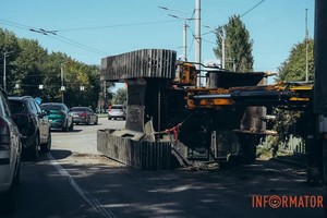 В Днепре на Запорожском шоссе на бок перевернулся экскаватор